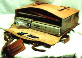 Dispatch Rider "Mark II" BriefcaseIt was time to make some changes, according to my brother, who was the recipient of the original briefcase. He had a new laptop that he wanted the case to accomodate. So, we sat down and worked out a set of modifications that turned his plain 'ol briefcase into what I like to call the "Mark II" version of the Dispatch Rider briefcase. The list of modifications is quite long, so bear with me. |