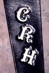 Dragon Guitar StrapThis guitar strap was a rush job for the birthday of the client's boyfriend. The dragon design was something the boyfriend had drawn which was inspired by a poster he had. I had to make some adjustments so that the line drawing would translate to leather, and I think it turned out well. On the back are his initials, of course. I wish there were a silver paint that went on smooth, with good opacity. The black dye tends to show through the silver paint unless you do like 5 coats. :(Price: $65+ |