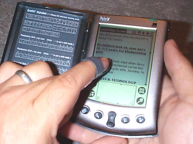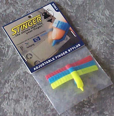 - Well, I carried it with me for several days, and tried to use it every time I used my PalmV. "Tried" is the operative word of that sentence, though. I found that it's simply not as convenient as the pen stylus that resides right there in my PalmV. When I remember to test the Stinger, I had to (put my stylus back, then) dig it out of my shirt or jeans pocket, stick it on my finger, and then use it. There simply isn't a convenient place or way to carry it with you on the go. It's not big, mind you, but it's not flat enough to stick in a wallet, even when it's little strap is unsnapped. It *has* to go in a pocket somewhere, which means it has to be dug out of that pocket. I found myself simply leaving it on when I thought I might be using my Palm more frequently. The problem with that is everything else. Although it's not sharp enough to seriously hurt someone, I had to be careful when picking up my son. Although typing with it on is do-able, it's not very efficient. In the end, I'll probably keep it on my desk and use it when the mood strikes, or if I find a particularly useful application for it... like Race Fever. hehe. ;-)