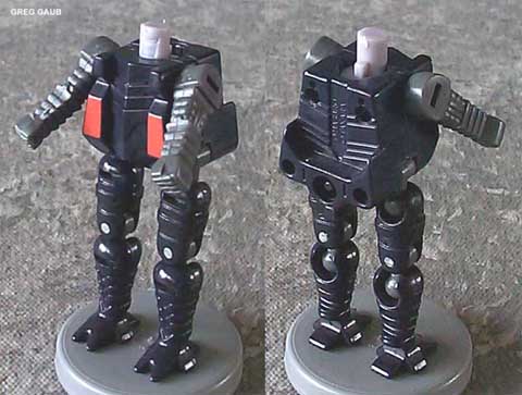 | Added by: 5318008 on August 01, 2003 Rated it: Comments: Just noticed the pictures you have here show a silver autobot/black decepticon color scheme. Before anyone gets an itchy flame trigger-finger, I'll tell you that 1) It was definitely silver decepticon/black autobot on the one I bought and 2) Go watch the show and see what they colored his head while he's hanging with the 'cons. |