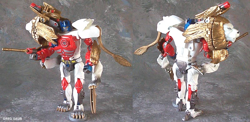 - A very well done lion mode with a big, thick mane. My only complaint is that his front legs are a little weak in that they don't stay were you put them all the time. No other real complaints, though. A very nice toy from Takara.