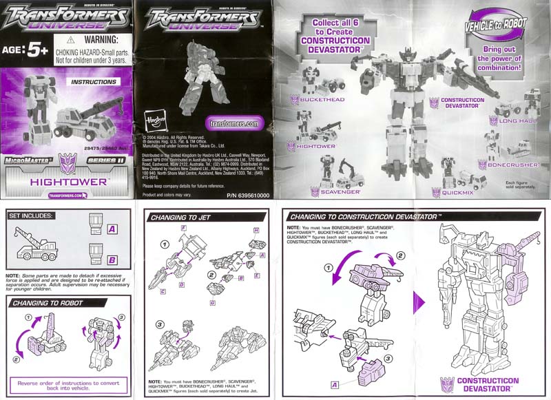 Greg's Review: Same review for all the Universe Devastator parts: These are Micromasters, plain and simple. The vehicle modes look pretty good. The transformations are really simple. The Robot modes are plain with limited articulation, and the green is a great neon Devastator green, as it should be. These toys are recolors of the Japanese Micromaster Sixbuilder and are well chosen and well done. |